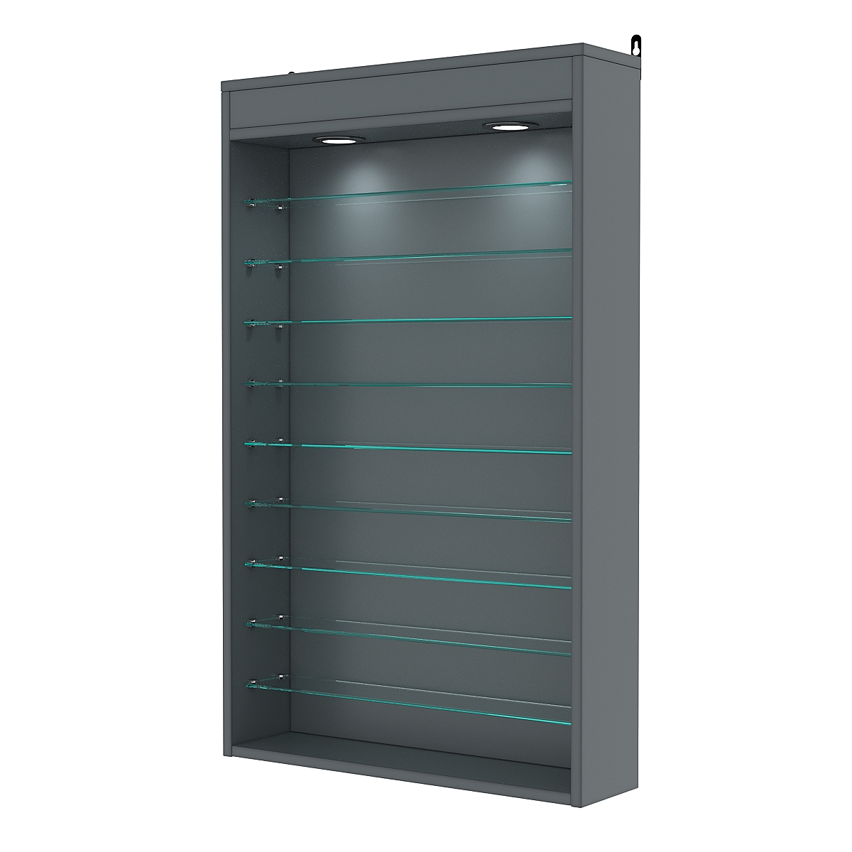 Витрина настенная №2-7Г с подсветкой, Темно-Серый