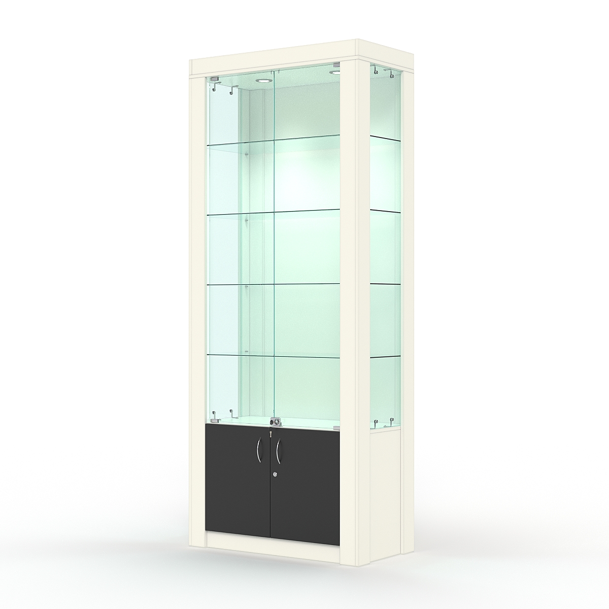 Стеклянные дверки в верхней секции — стекло 5мм, закрываются на замок.