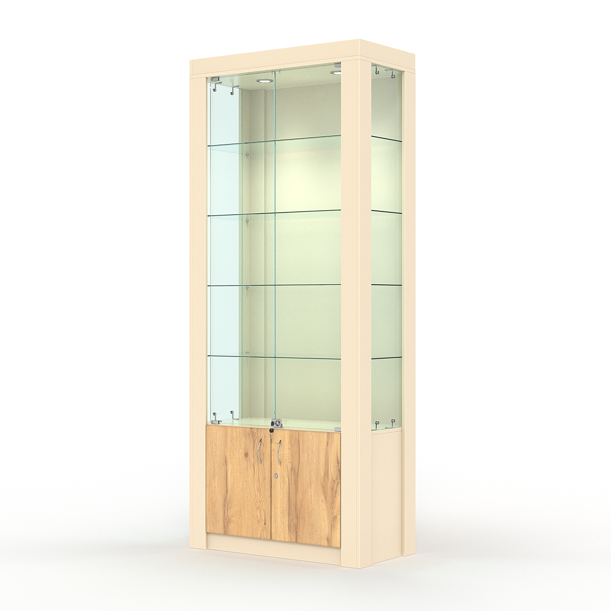 Витрина МОДЕРН №7 (с дверками, задняя стенка — ДВП), Крем Вайс и Дуб Золотистый