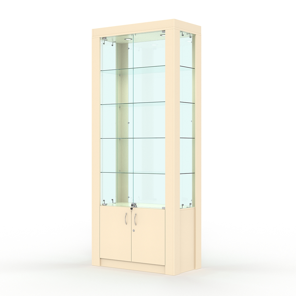 Стеклянные дверки в верхней секции — стекло 5мм, закрываются на замок.