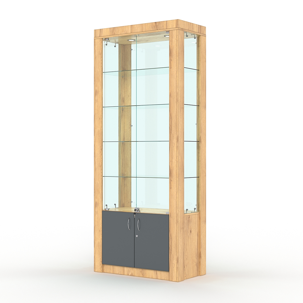 Серия витрин «МОДЕРН» представляет собой премиум вариант торговых витрин. Стойки из ЛДСП 16мм, которые создают грани витрины, грамотно спроектированы для вертикалльной установки диодной подсветки. Витрины «МОДЕРН» широко используются для демонстрации и продажи таких товаров как: наручные часы, сувенирная продукция, бижутерия, вейпы и многих других.