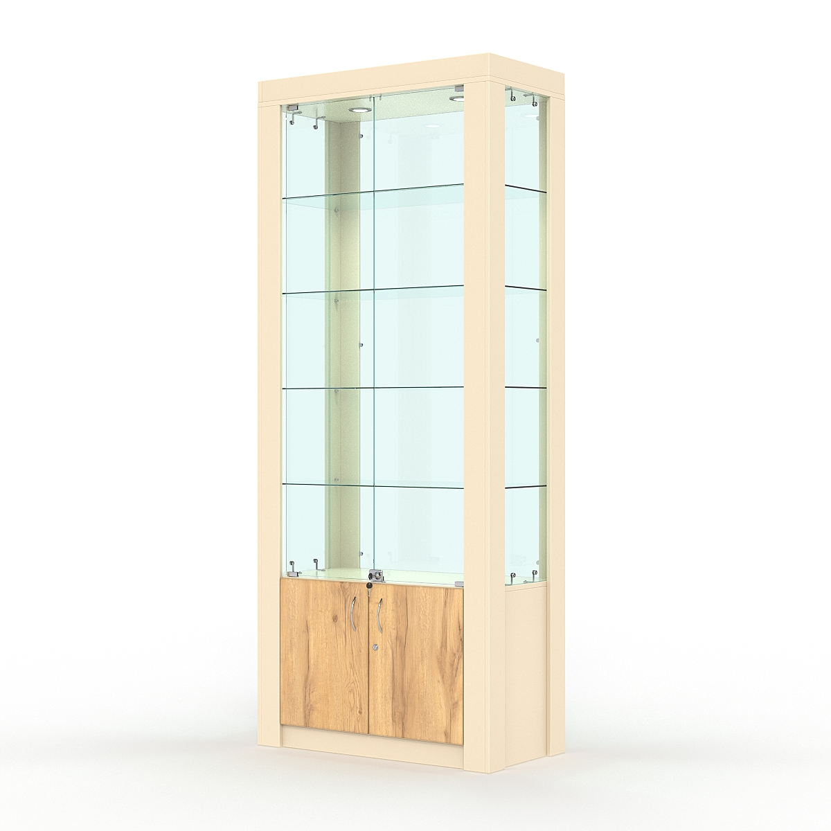 Стеклянные дверки в верхней секции — стекло 5мм, закрываются на замок.