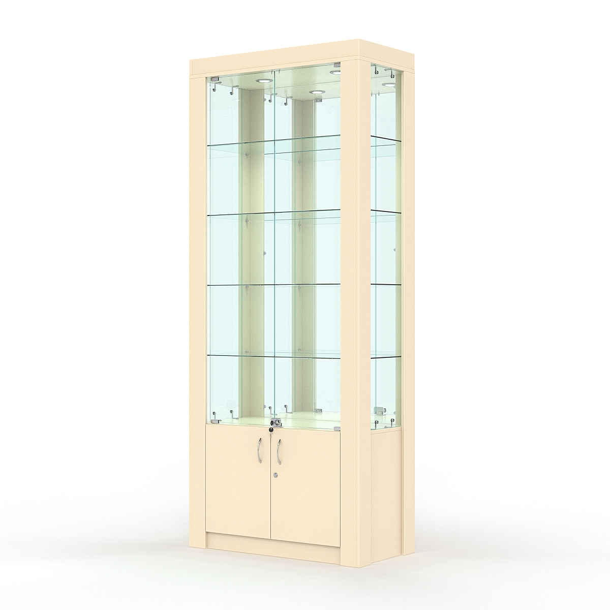 Витрина МОДЕРН №9 (с дверками, задняя стенка — зеркало), Крем Вайс