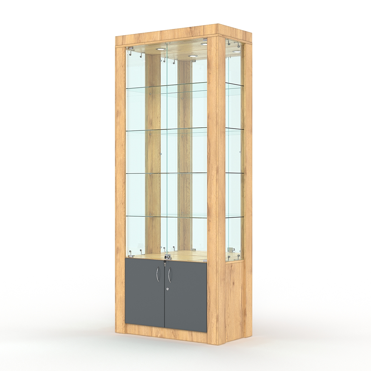 Серия витрин «МОДЕРН» представляет собой премиум вариант торговых витрин. Стойки из ЛДСП 16мм, которые создают грани витрины, грамотно спроектированы для вертикалльной установки диодной подсветки. Витрины «МОДЕРН» широко используются для демонстрации и продажи таких товаров как: наручные часы, сувенирная продукция, бижутерия, вейпы и многих других.