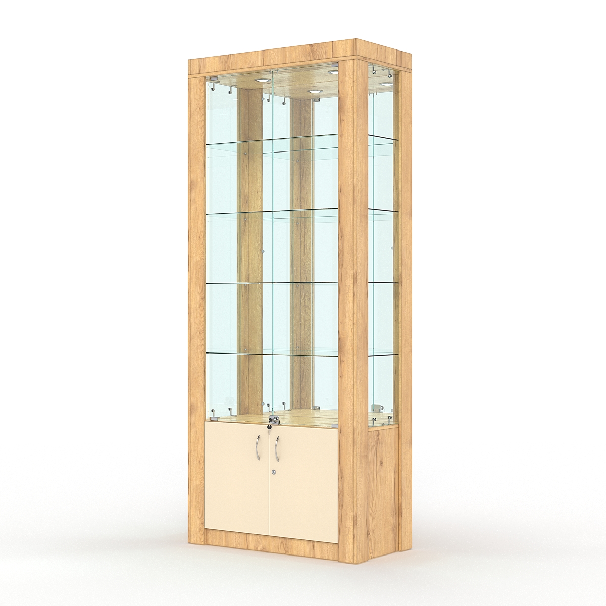 Стеклянные дверки в верхней секции — стекло 5мм, закрываются на замок.