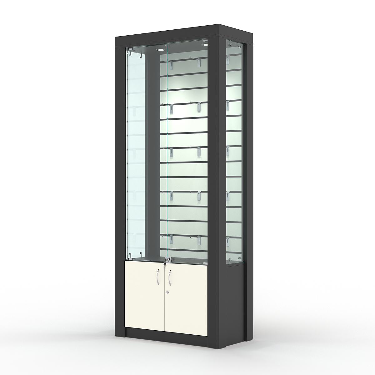 Витрина "МОДЕРН" №10 (с дверками, задняя стенка — экономпанель), Черный и Белый