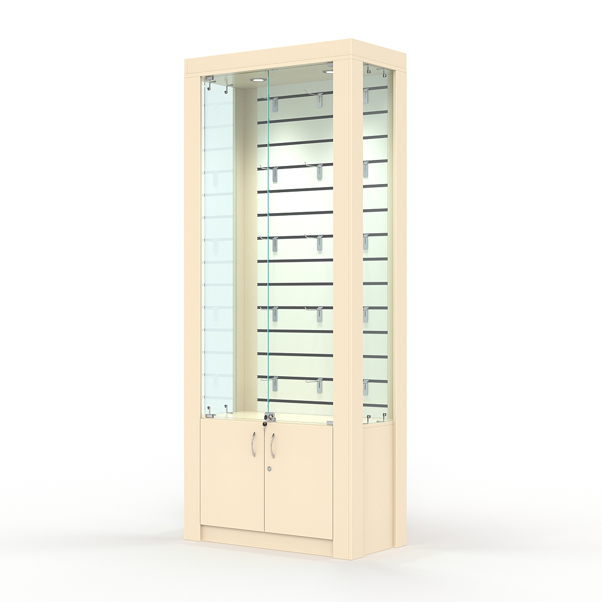 Стеклянные дверки в верхней секции — стекло 5мм, закрываются на замок.