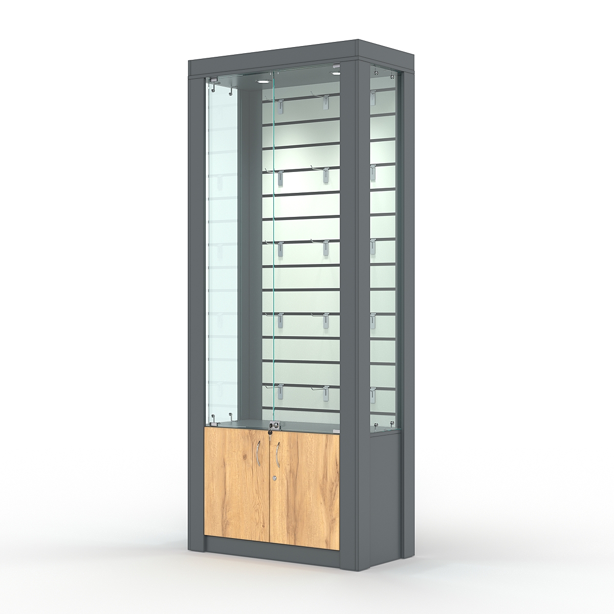 Витрина "МОДЕРН" №10 (с дверками, задняя стенка — экономпанель), Темно-серый и Дуб Золотистый