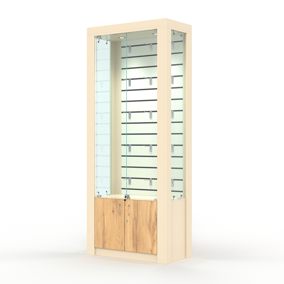 Серия витрин «МОДЕРН» представляет собой премиум вариант торговых витрин. Стойки из ЛДСП 16мм, которые создают грани витрины, грамотно спроектированы для вертикалльной установки диодной подсветки. Витрины «МОДЕРН» широко используются для демонстрации и продажи таких товаров как: наручные часы, сувенирная продукция, бижутерия, вейпы и многих других.