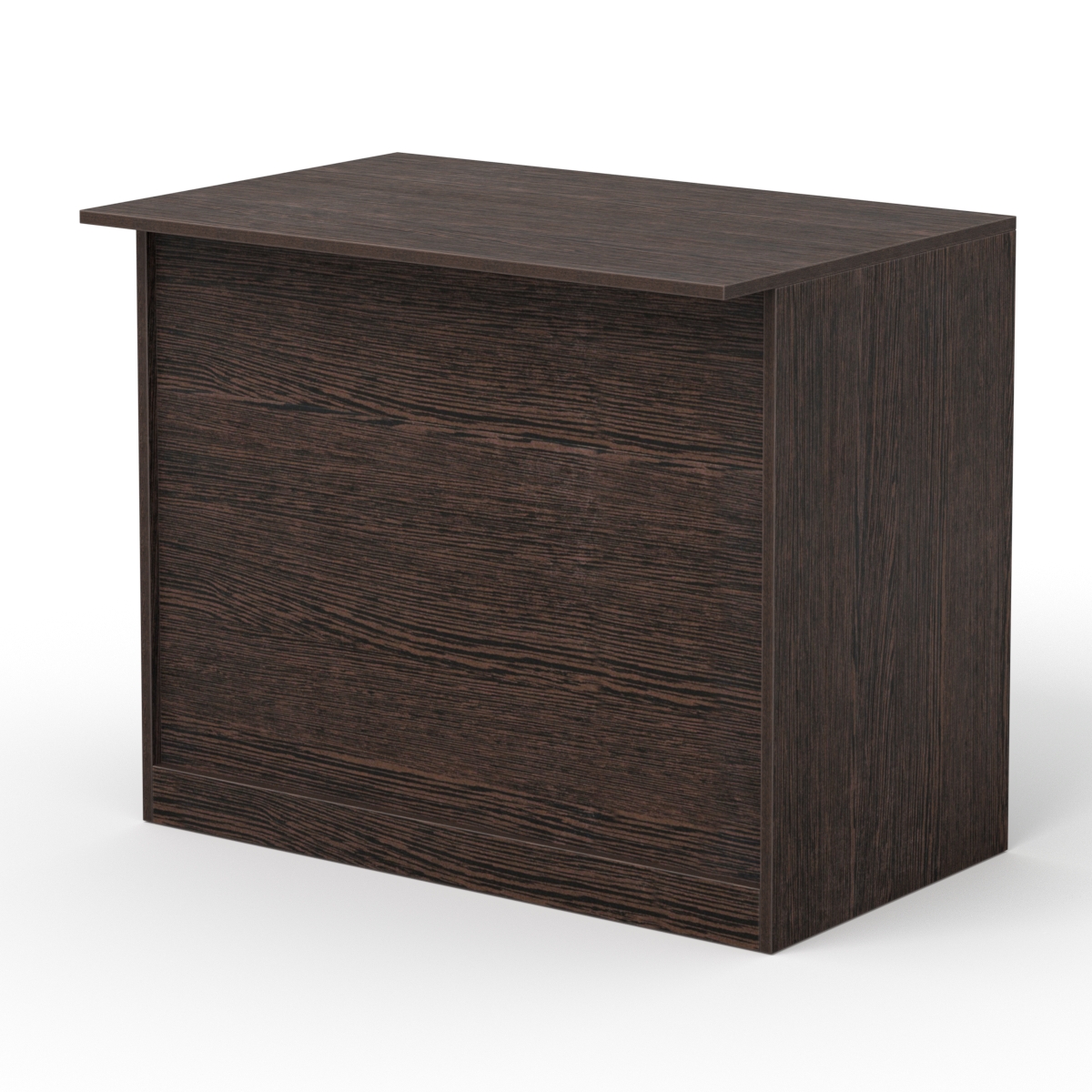 Стол для записей и расчетов при осуществлении сделки между продавцом и покупателем. Фасад закрытый. Вверху расположена широкая столешница, выступающая вперед. С внутренней стороны фасада, внизу, находится полка. Каркас выполнен из ЛДСП двух цветов. Цвет подбирается в вариантах стандарт и на заказ.