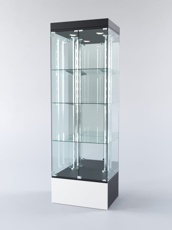 Витрина "ХАЙТЕК" №5-2 (задняя стенка — зеркало), Черный+Белый