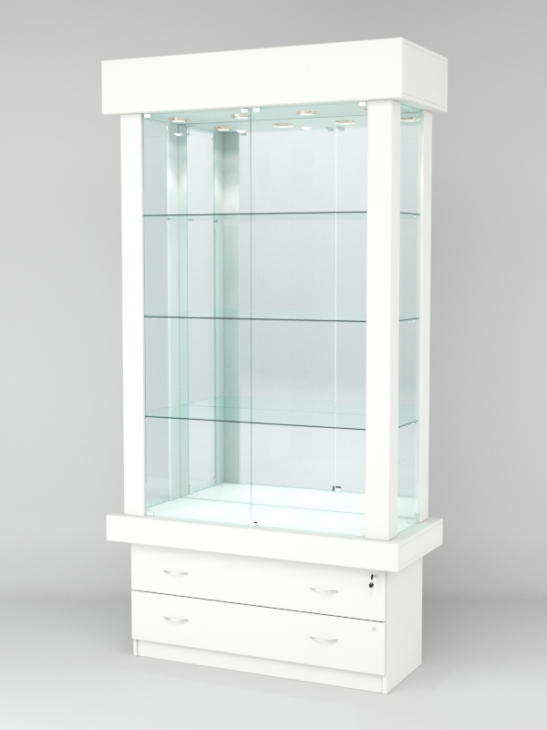 Витрина ЭЛИТА №3-2 (задняя стенка — зеркало), Белый