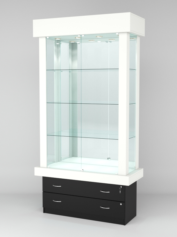 Витрина "ЭЛИТА" №3-2 (задняя стенка — зеркало), Белый-Черный