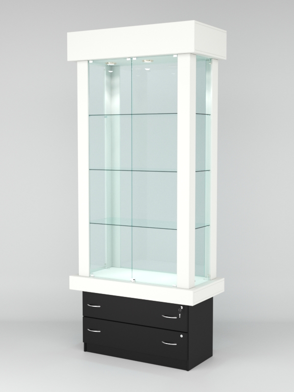 Стеклянные дверки в верхней секции присутствуют, закрываются на замок.