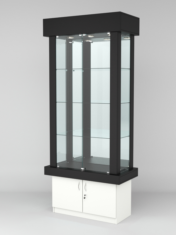 Витрина "ЭЛИТА" №6-1 (задняя стенка — зеркало), Черный-Белый
