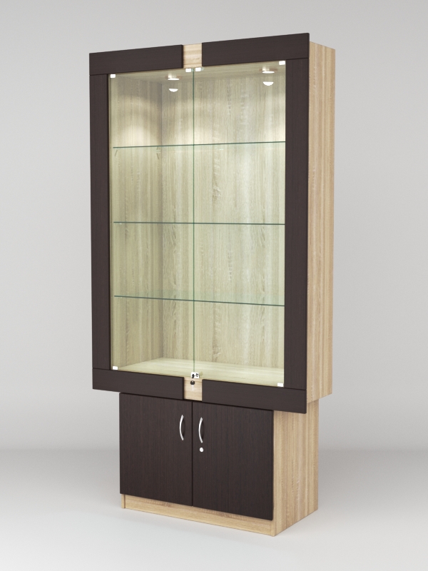 Стеклянные дверки в верхней секции присутствуют, закрываются на замок.
