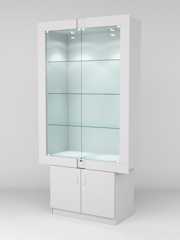 Стеклянные дверки в верхней секции присутствуют, закрываются на замок.