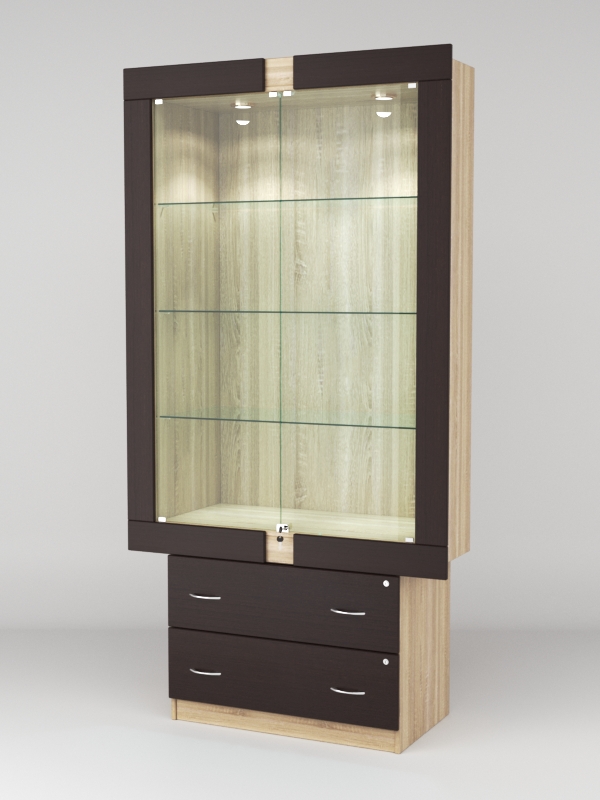 Витрина ЭЛЕКТРА №1-2 (задняя стенка — ДСП), Дуб Венге-Дуб Сонома