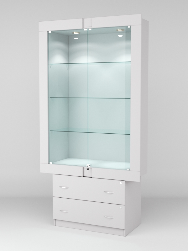 Стеклянные дверки в верхней секции присутствуют, закрываются на замок.