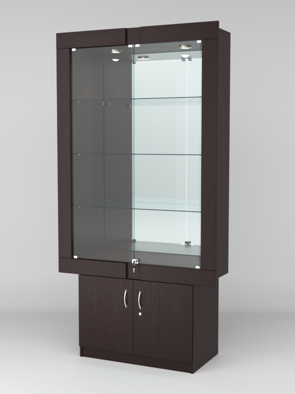 Стеклянные дверки в верхней секции присутствуют, закрываются на замок.