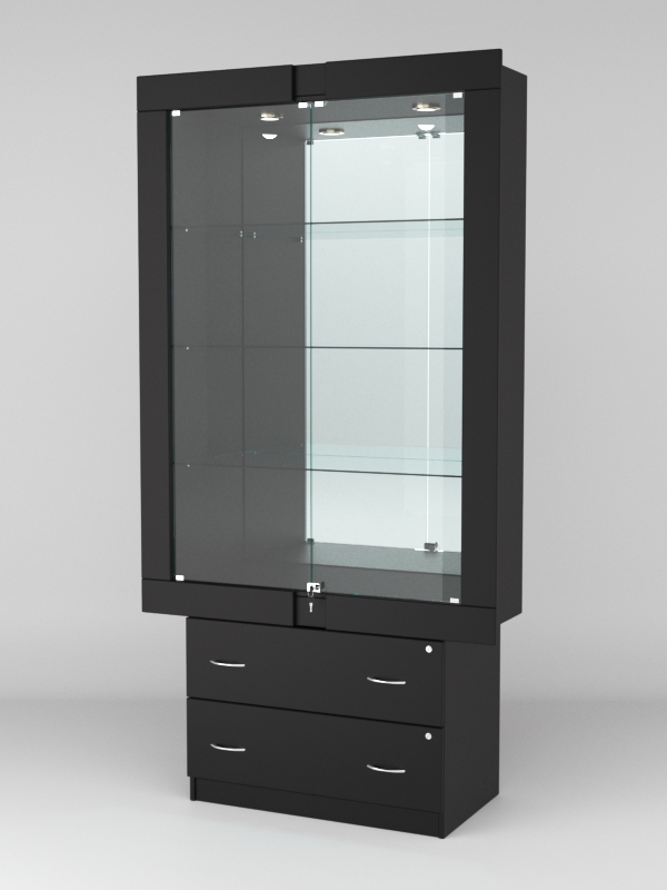 Стеклянные дверки в верхней секции присутствуют, закрываются на замок.