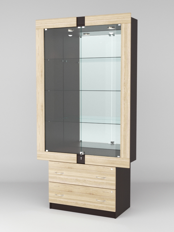Стеклянные дверки в верхней секции присутствуют, закрываются на замок.