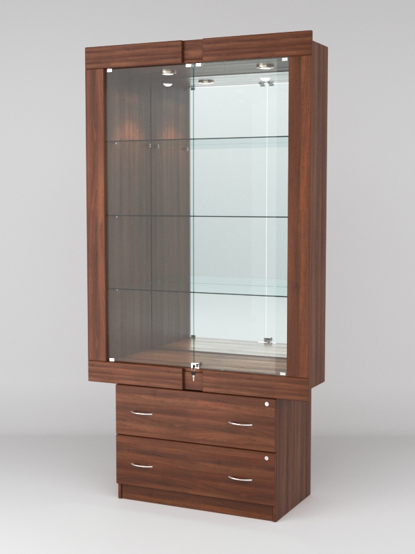 Стеклянные дверки в верхней секции присутствуют, закрываются на замок.