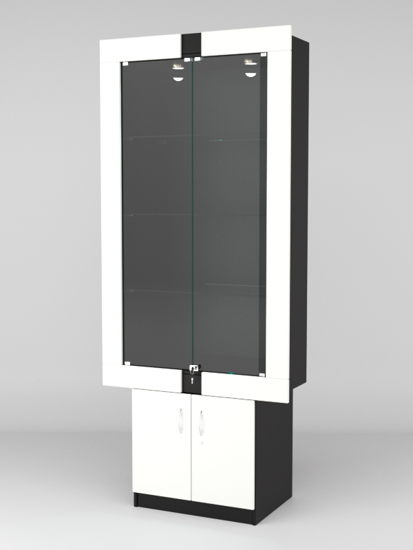 Стеклянные дверки в верхней секции присутствуют, закрываются на замок.