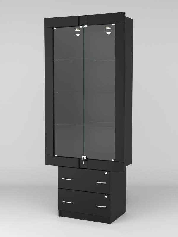 Стеклянные дверки в верхней секции присутствуют, закрываются на замок.