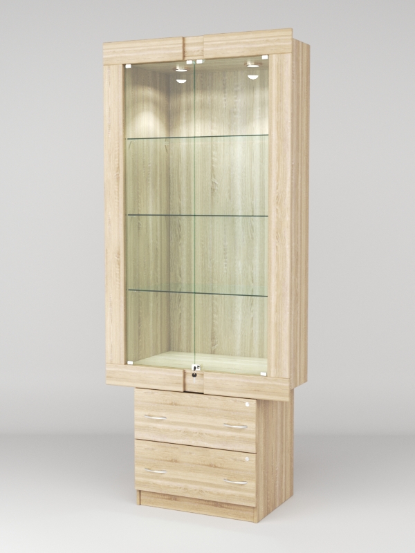 Стеклянные дверки в верхней секции присутствуют, закрываются на замок.