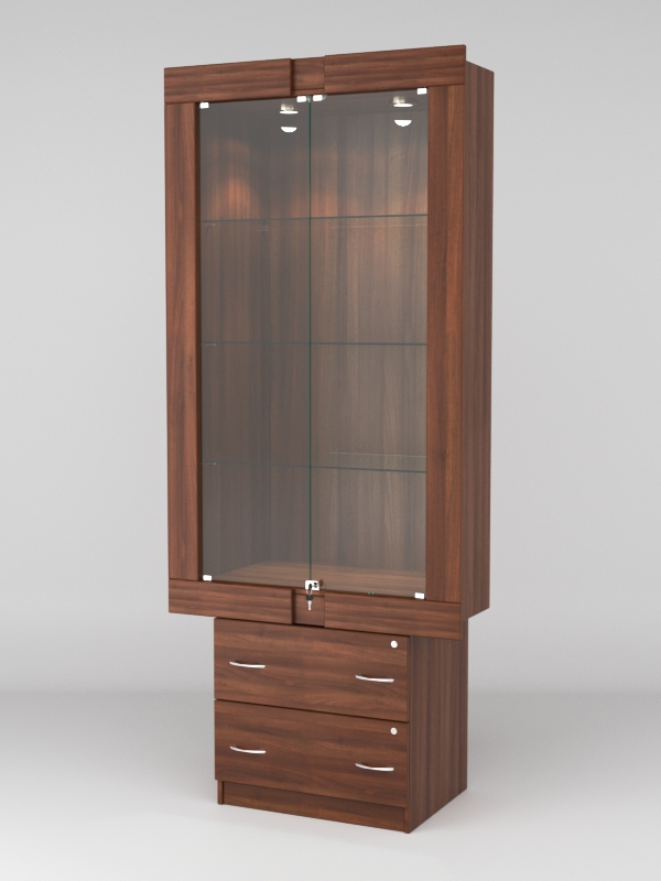 Стеклянные дверки в верхней секции присутствуют, закрываются на замок.