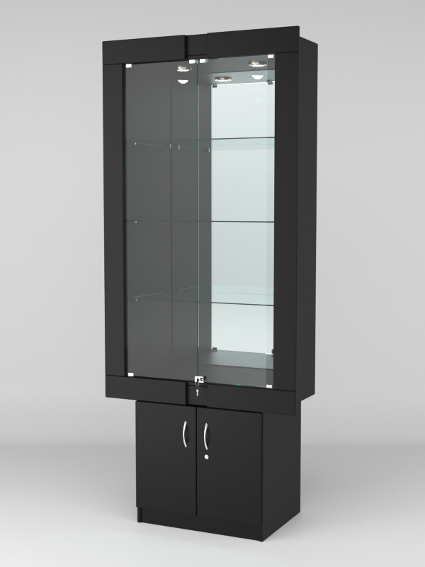 Стеклянные дверки в верхней секции присутствуют, закрываются на замок.