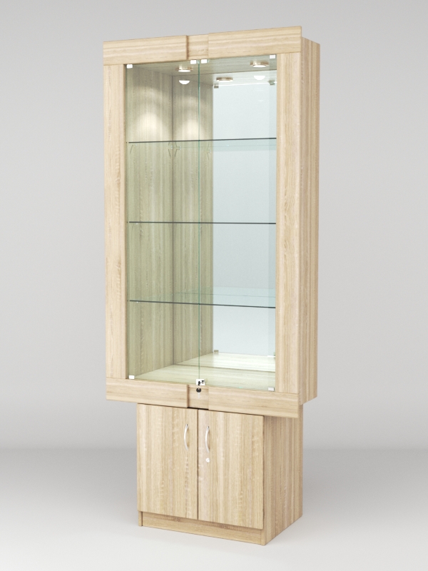 Стеклянные дверки в верхней секции присутствуют, закрываются на замок.