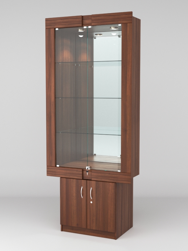 Стеклянные дверки в верхней секции присутствуют, закрываются на замок.