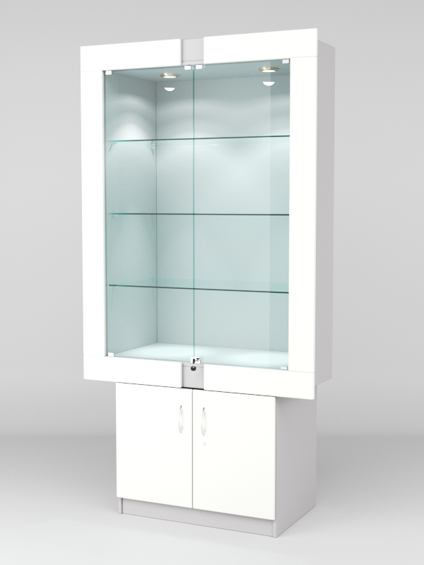 Стеклянные дверки в верхней секции присутствуют, закрываются на замок.