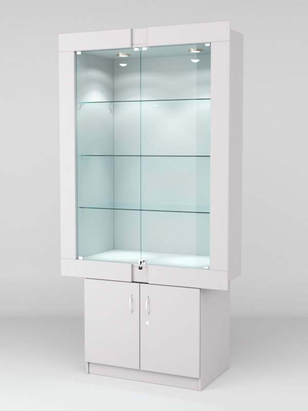 Стеклянные дверки в верхней секции присутствуют, закрываются на замок.