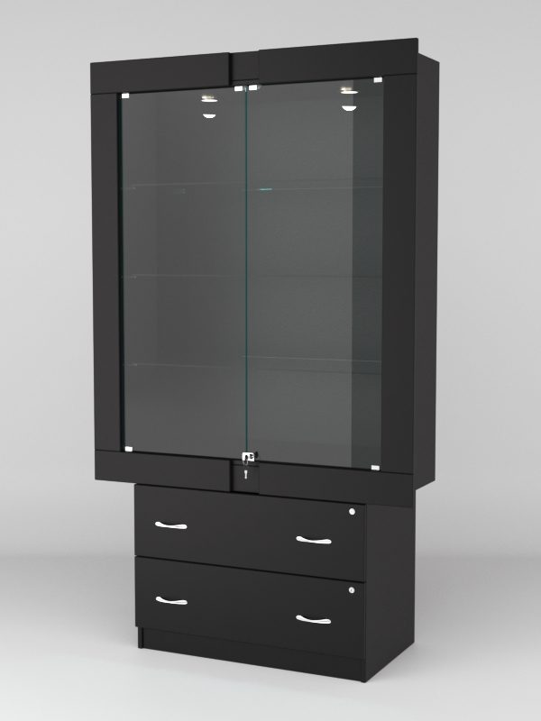 Стеклянные дверки в верхней секции присутствуют, закрываются на замок.