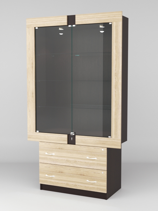 Стеклянные дверки в верхней секции присутствуют, закрываются на замок.