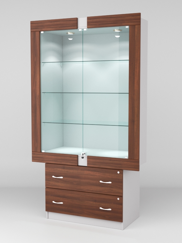 Стеклянные дверки в верхней секции присутствуют, закрываются на замок.