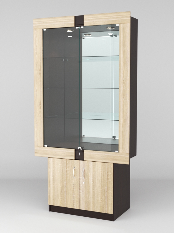 Стеклянные дверки в верхней секции присутствуют, закрываются на замок.
