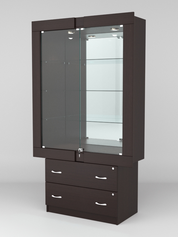 Стеклянные дверки в верхней секции присутствуют, закрываются на замок.