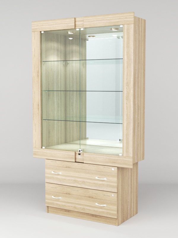 Стеклянные дверки в верхней секции присутствуют, закрываются на замок.