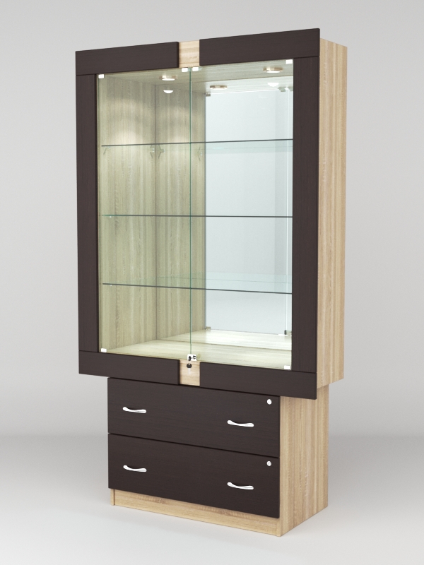 Витрина ЭЛЕКТРА №6-2 (задняя стенка — зеркало), Дуб Сонома-Дуб Венге