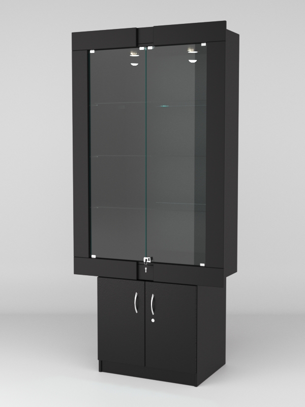 Стеклянные дверки в верхней секции присутствуют, закрываются на замок.