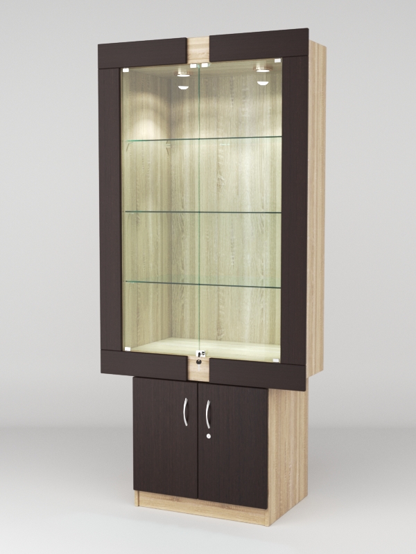 Стеклянные дверки в верхней секции присутствуют, закрываются на замок.