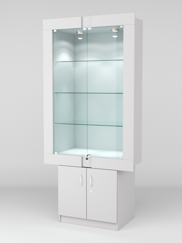 Стеклянные дверки в верхней секции присутствуют, закрываются на замок.
