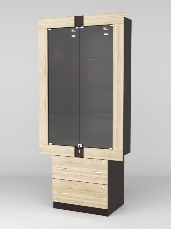 Витрина "ЭЛЕКТРА" №7-2 (задняя стенка — ДСП), Дуб Венге-Дуб Сонома