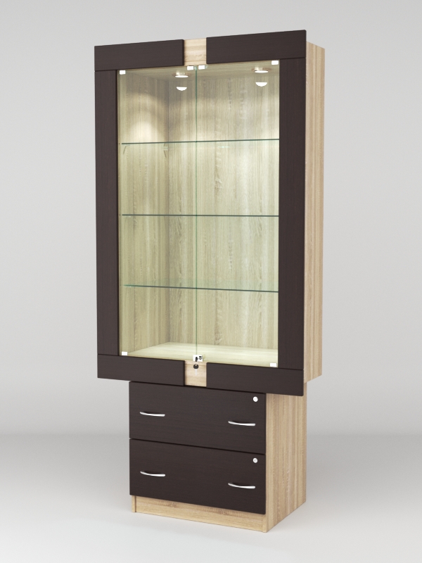Стеклянные дверки в верхней секции присутствуют, закрываются на замок.