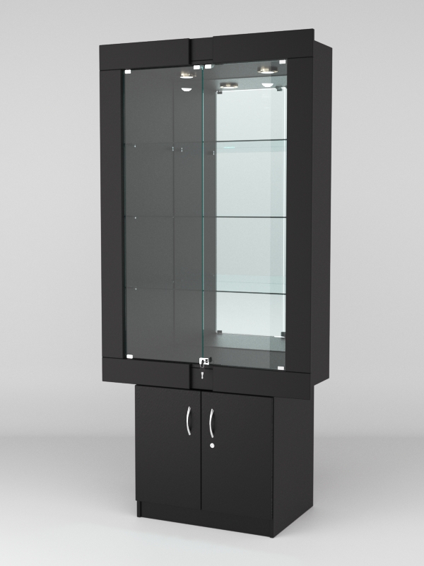 Стеклянные дверки в верхней секции присутствуют, закрываются на замок.