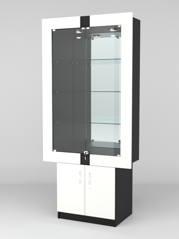 Стеклянные дверки в верхней секции присутствуют, закрываются на замок.
